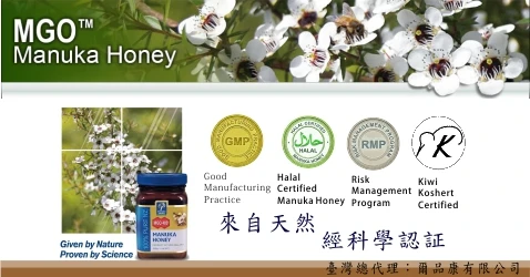 5、麥蘆卡(Manuka)是紐西蘭獨有的本土植物又稱為麥蘆卡茶樹;具有其他蜂蜜所沒有的獨特活性成份、天然化合物;亦稱可食用甲基乙二醛(MGO)又稱為麥蘆卡素。